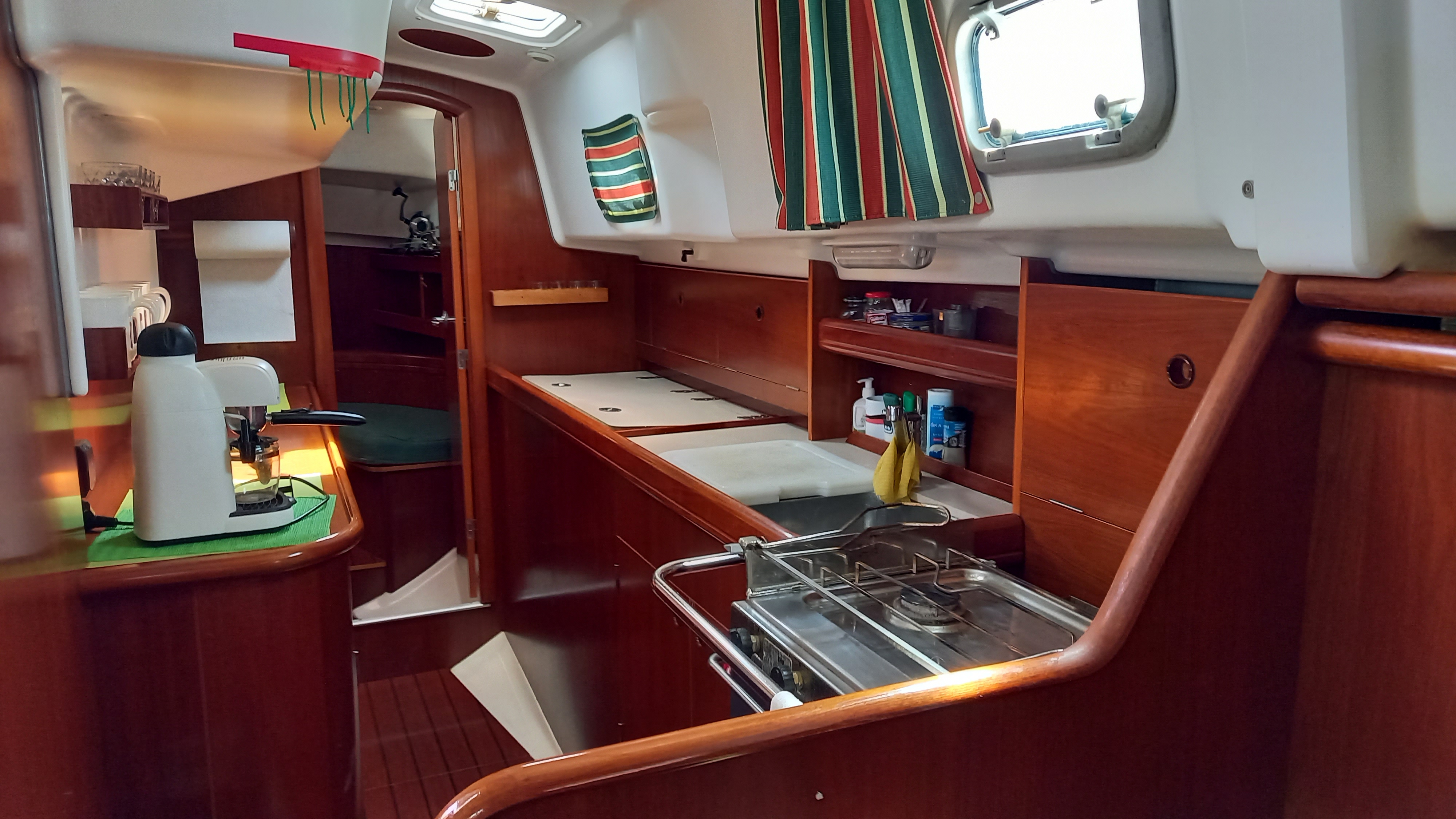 S/y CILLA to Oceanis 36 cc, bardzo wygodny jacht o długości 11m. Posiada dwuosobową kabinę dziobową, dwuosobową kabinę rufową oraz dwie koje w messie. Do tego w pełni wyposażona kuchnia oraz łazienka z toaletą.